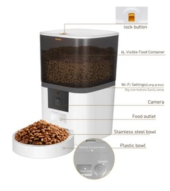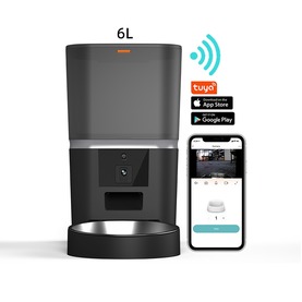 Automatic 6L Smart WIFI Pet Feeder with Camera. Introducing the ultimate solution for pet owners seeking convenience and precision in feeding their furry friends. This innovative automatic feeder is designed to ensure your pets are well-fed, even when you're not home. Available colours: Black or White. App controlled. Food grade ABS material. Includes the steel bowl.